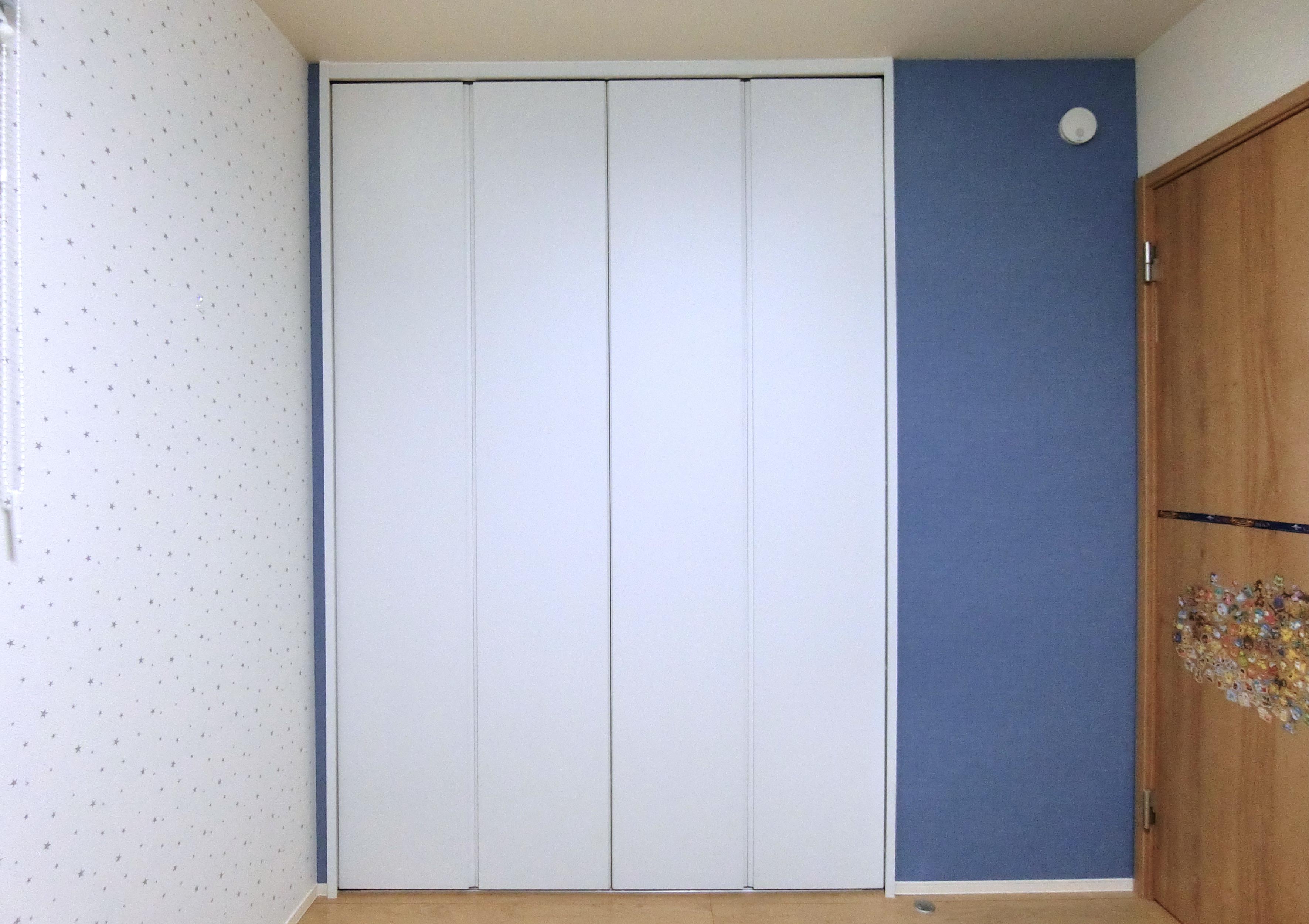 使いづらかったクローゼットの上部を解体し、天井まで収納に活用出来るよう、建具の交換をいたしました。LIXIL社のヴィータスパネルをご採用いただき、お子様の成長に合わせて、収納計画をしていただけます。ブルーのクロスが映える、素敵なクローゼット収納になりました。N様、この度はARUSにご依頼いただきまして誠にありがとうございました。今後ともARUSをどうぞよろしくお願いいたします。